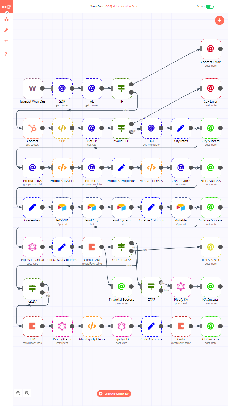 Click “Execute Workflow” to test