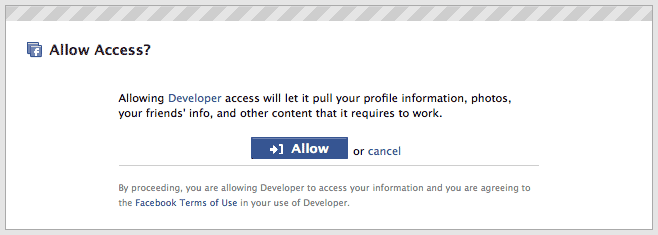 http://www.facebook.com/developers/createapp.php adresinden uygulama oluşturacağız fakat eğer “Developers” uygulamasını kullanmıyorsanız bu bağlantıya gittiğinizde önce Developers uygulamasını eklemenizi isteyen bir sayfaya ulaşırsınız.