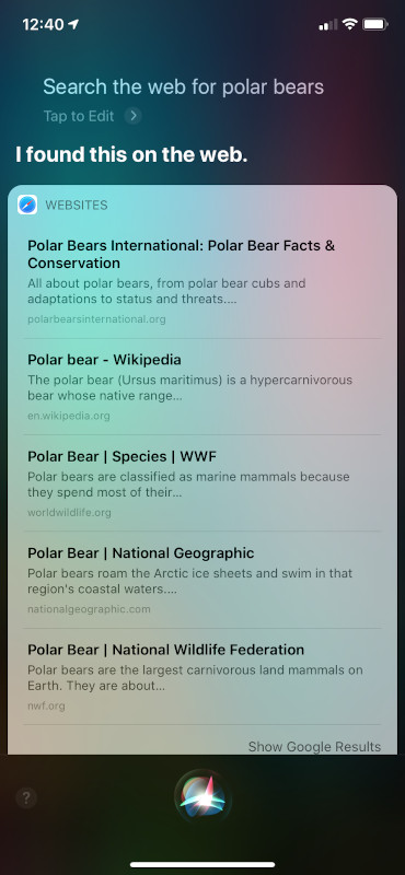 Consider tomorrow Apple decides to launch Siri web results and makes it the default search engine in Safari - probably with a few more impressive voice-initiated search (you can kinda do something similar today, with tapping the search box and using dictation on the keyboard - or actually directly asking Siri). We had seen a similar “oh it won’t happen, people will stick with Google” when Apple Maps launched. We saw people didn’t change the OS defaults. I can’t tell a percentage but if I had to guess, Google took a hit when that happened. And certainly, it can happen - maybe even bigger - on the search side.