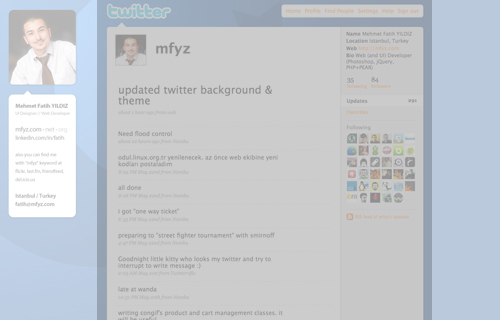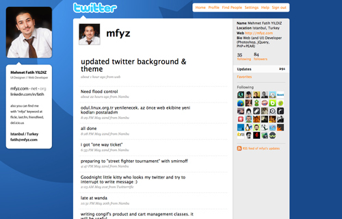 Benim twitter profilimi http://www.twitter.com/mfyz ziyaret edebilirsiniz.