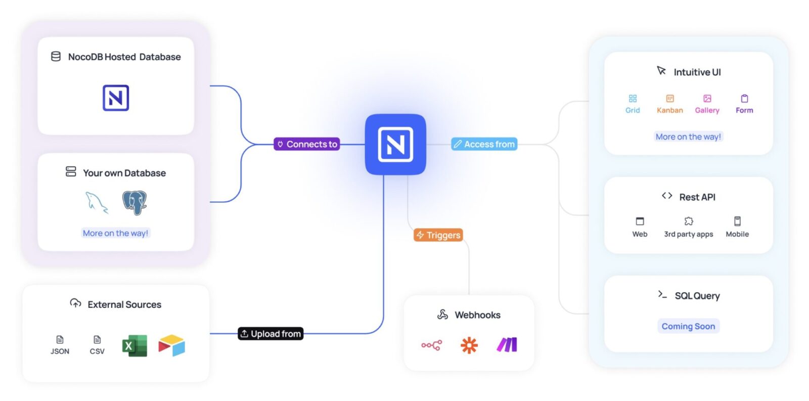 NocoDB provides CRUD (Create, Read, Update, Delete) endpoints for your database tables. This feature allows you to interact with your data in a straightforward and efficient way, enabling you to perform essential database operations directly from the platform.