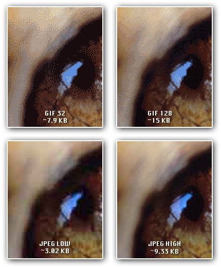 Küçük imajlar ile uğraşıyorsanız, mesela butonlar, ikonlar vs vs, ne kadar renkli olursa olsunlar gif ile çalışmanızın sonuçları daha küçük boyutlu dosyalar çıkaracaktır.
