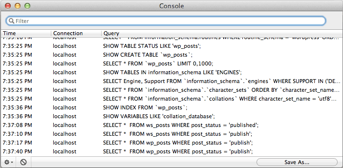 Bir diğer ufak özellik de, yaptığınız arayüzsel işlemlerin (mesela tablo yapısıyla oynadınız) hangi SQL’leri çağırdığını görmek istiyorsanız Console (View/Show Console) ekranını açarak çağrılan tüm sorguları görebilir ve kolayca kopyalayarak şema dosyaları oluşturabilirsiniz.